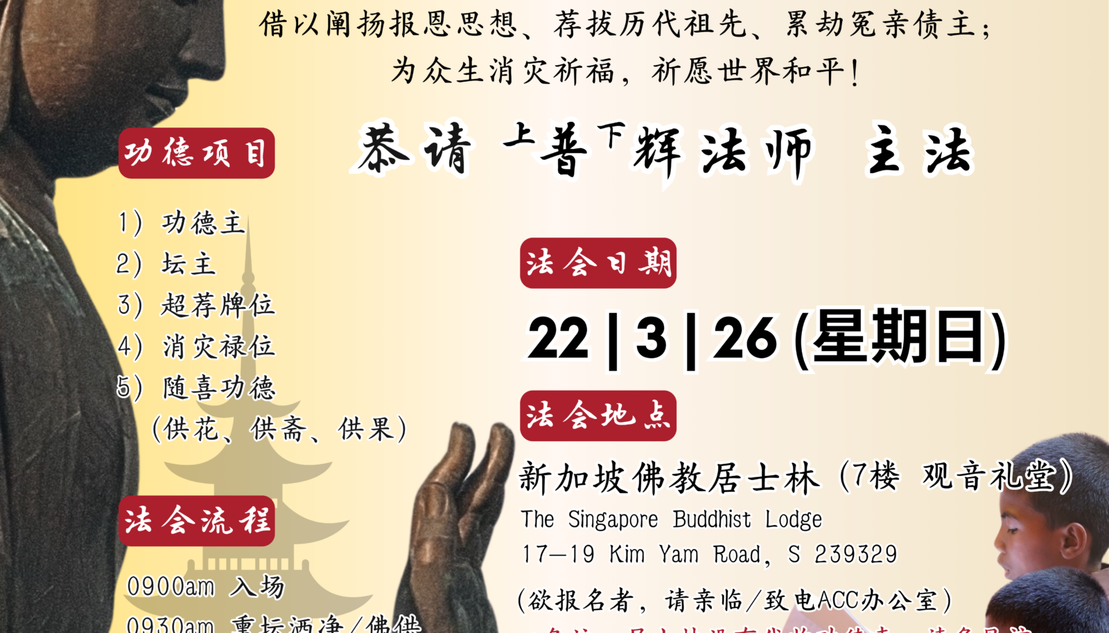 我们诚挚邀请您与亲友一同参与这场难得的法缘盛会。
